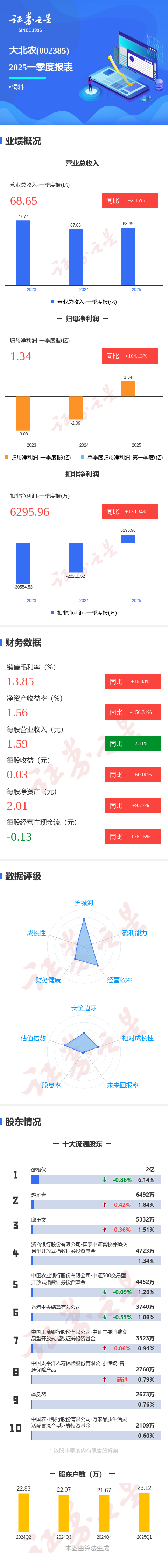 证券之星消息,大北农2025年一季报显示,公司主营收入68.65亿元,同比上升2.36%;归母净利润1.34亿元,同比上升164.13%;扣非净利润6295.96万元,同比上升128.35%;负债率64.42%,投资收益1.38亿元,财务费用1.18亿元,毛利率13.85%。
